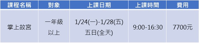 2.可報名單日1/25(二)故宮參訪行程。